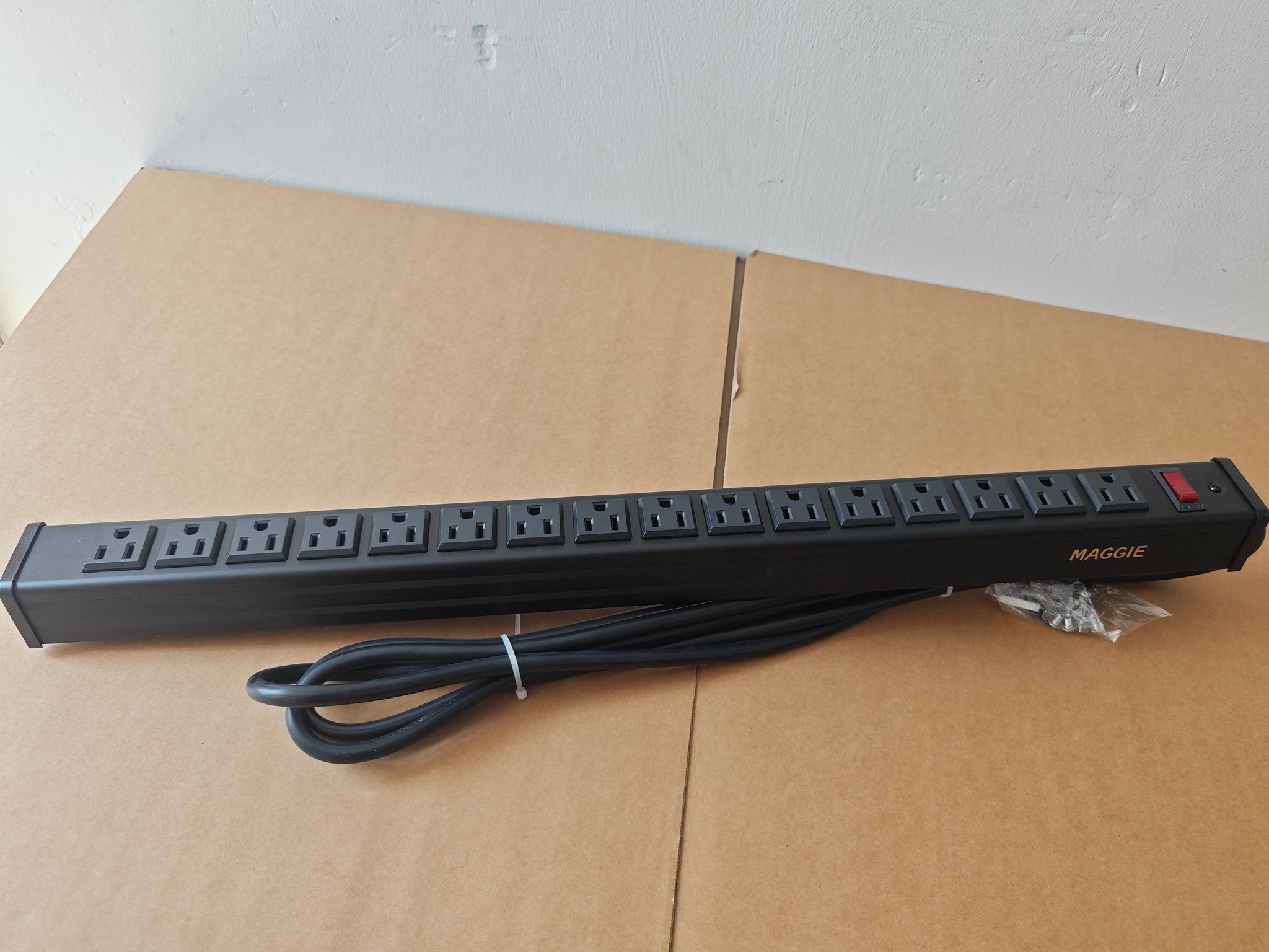 Maggie 16 Outlets Long Power Strip Metal Wall Mount Power Strip 10 FT Heavy Duty Garage